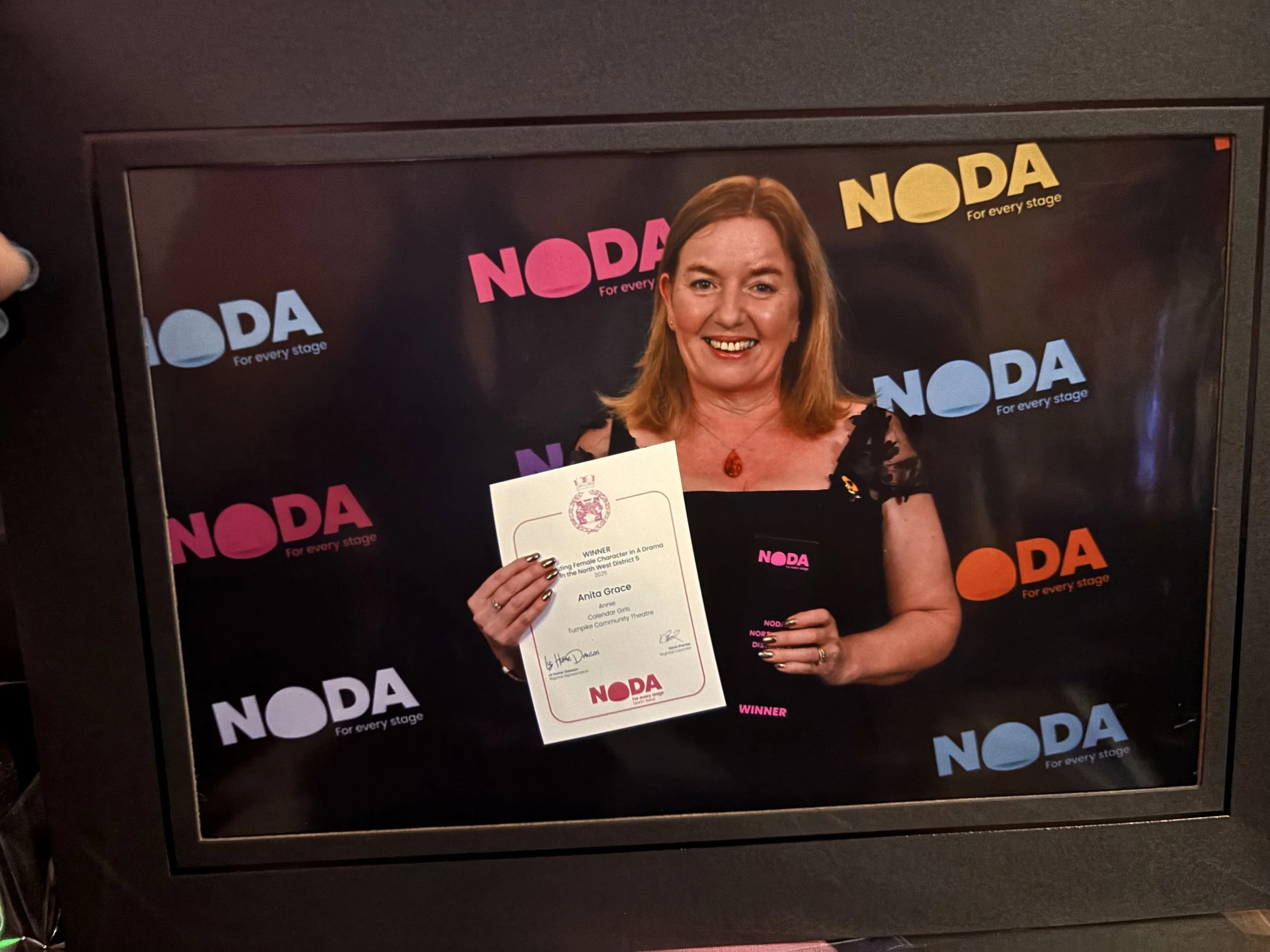 On the night, Anita Grace also won the award of Best Leading Female in a Drama for her truly stunning portrayal of Annie in the group’s summer 2025 production of Calendar Girls which raised much needed funds for Wigan and Leigh Hospice through the groups very own calendar. Anita jointly won the same category alongside her co-star Kate Sweeney in the 2025 Bolton Amateur Theatre Societies awards in September.